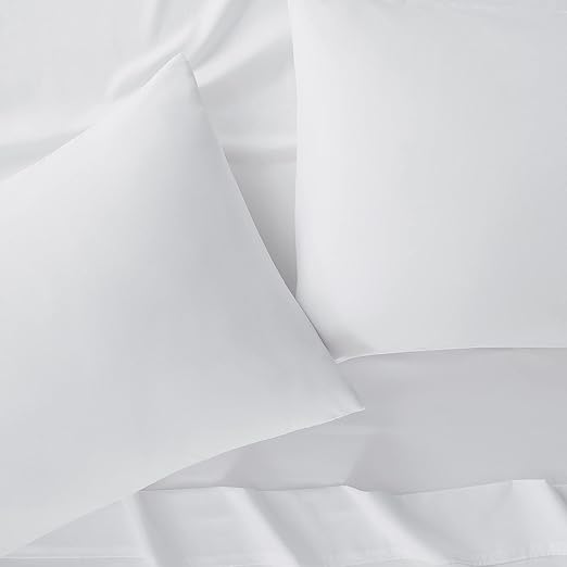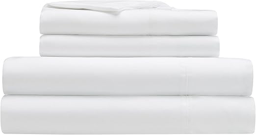 4 pieces – King size – Serta Simply Clean Super Soft Hypoallergenic Stain Resistant White (King set includes 1 fitted sheet 78 x 80 inches with 13 inch deep pocket, 1 flat sheet 108 x 102 inches, 2 pillowcases 20 x 40 inches each with 100% polyester, 85 gsm.)