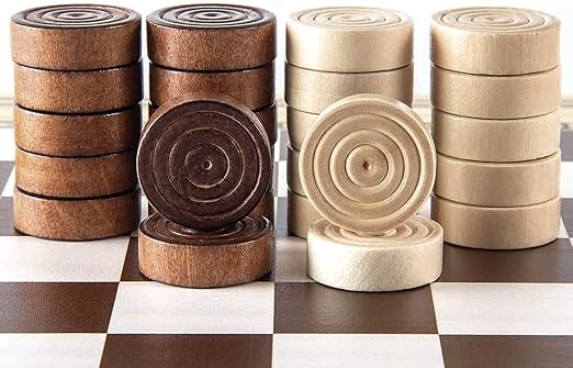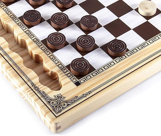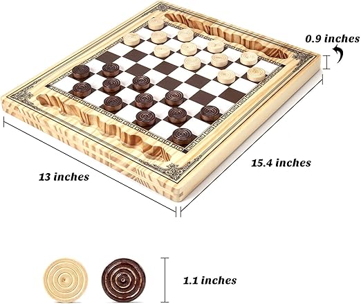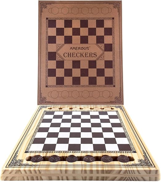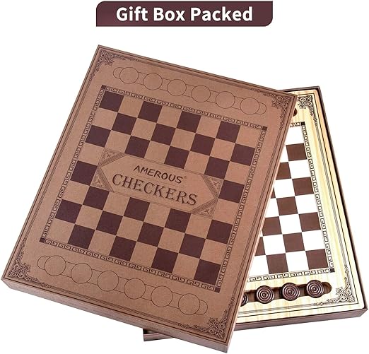 Wooden Checkers Set, Checkers Board Game with Storage Grooves – 24 Checkers Pieces – Gift Box Packed, Classic Board Games for Kids, Adults