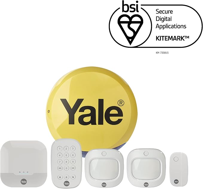 Yale IA-320 Sync Smart Home Security Alarm, 6 Piece Kit, Self Monitored, No Contract, Wireless, 200m Range, Featuring Window, Door And Movement PIR Sensors, External & Internal Siren, Works With Alexa